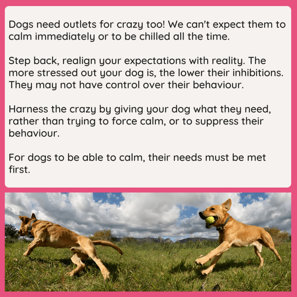 But as much as we might like our dogs to be calm, they do need opportunities for crazy! And establishing a way to support them in this can help them cope better with the effects of daily life, and all the challenge that brings.