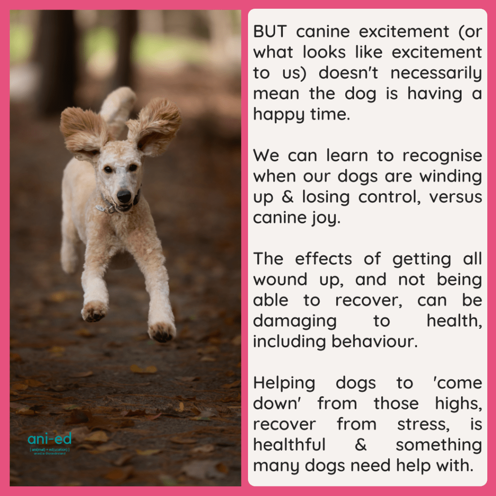 We can also apply some established behaviours to help bring the dog down again and respond to cues, in between play that brings them up, like in this clip: