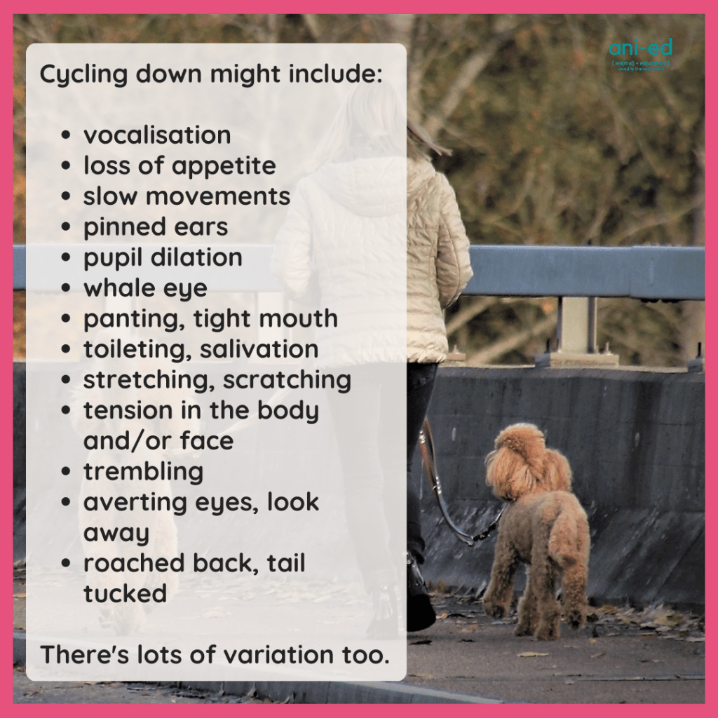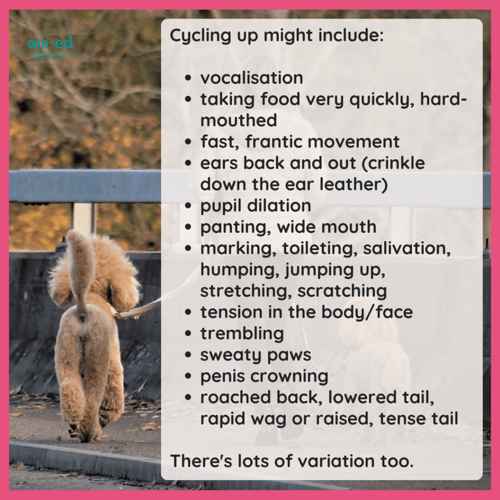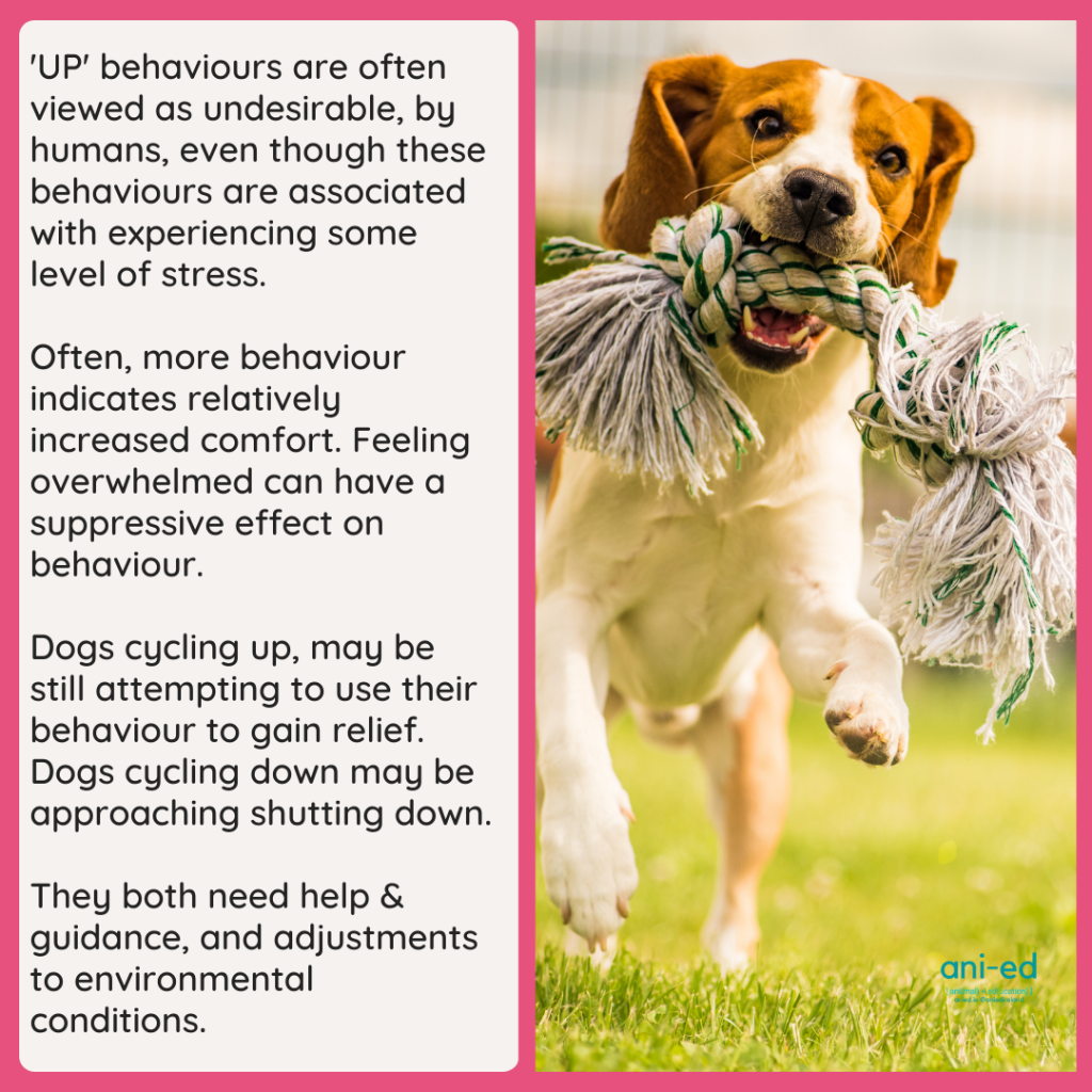 This means these dogs are up and up and up and up, and may find it more difficult to come back down, to inhibit their behaviour, to respond to cues, and may be living in an ongoing stress bubble.