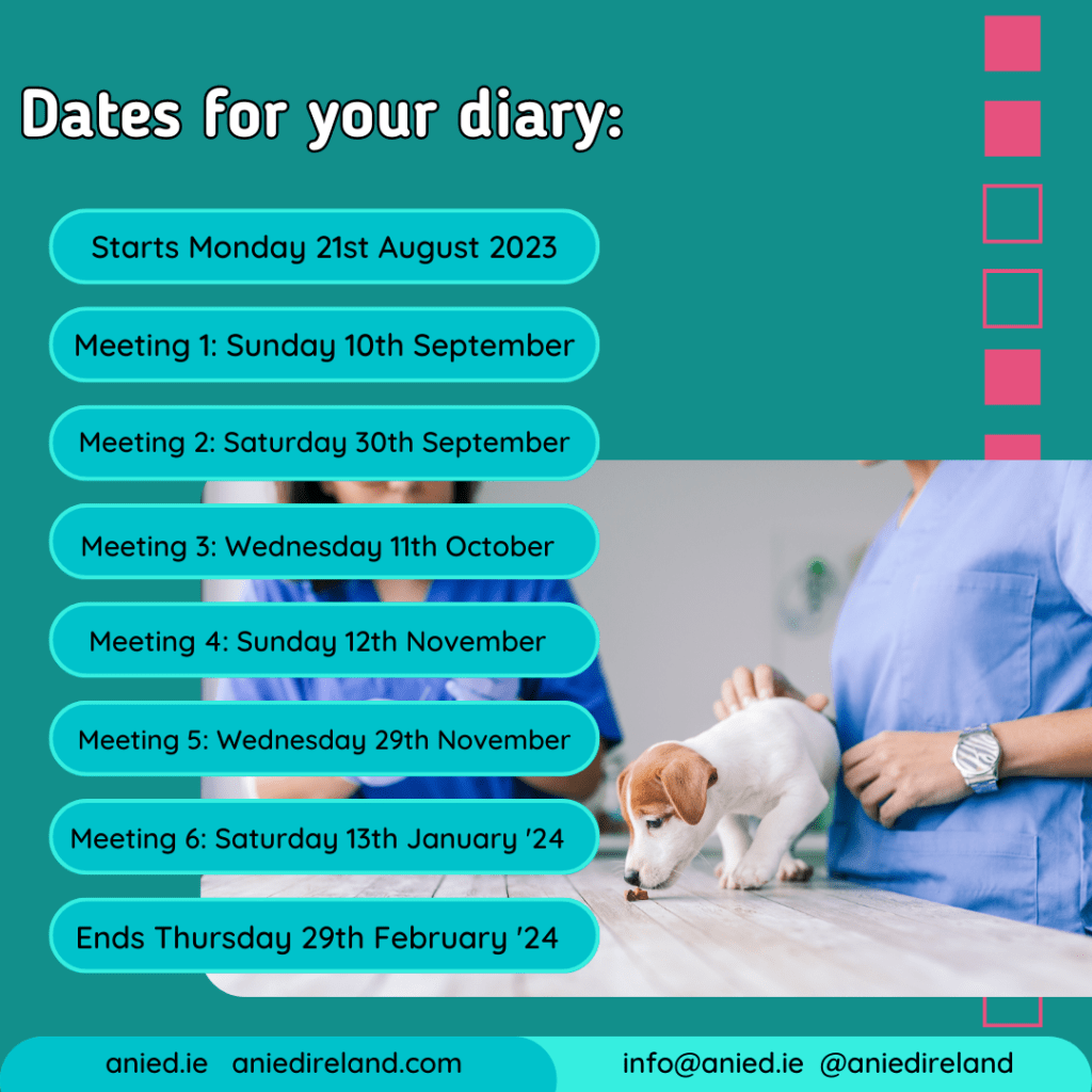If you would like to discuss this course further, discuss payment plans or discuss entry requirements, please get in touch by emailing info@anied.ie