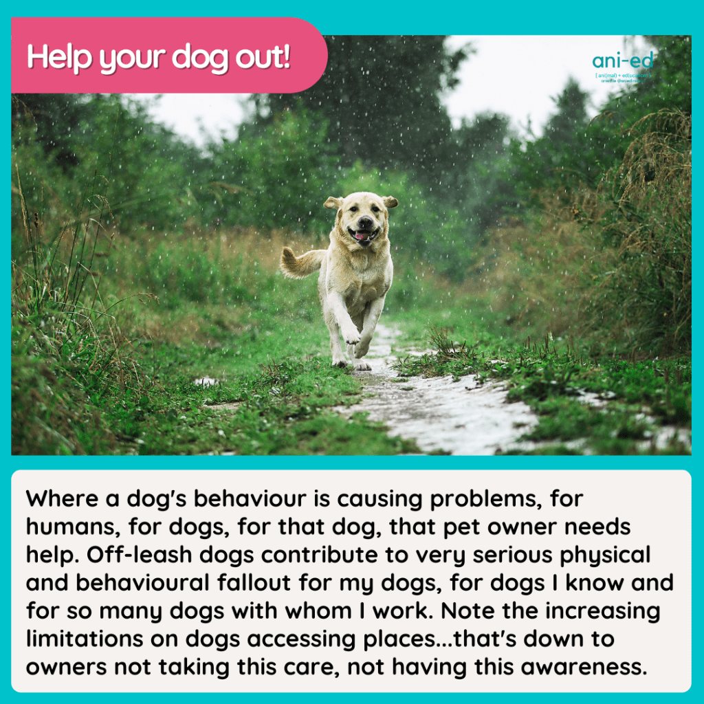 And mostly, don’t allow your dog be a nuisance for others. Your dog is not being “friendly”, and you are not “socialising” by allowing your dog run up to others unsolicited.