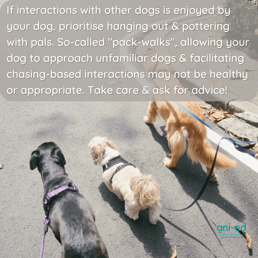 The good news is that, we are starting to see more interest in dogs’ experiences on their outings including their intraspecies social interactions (e.g., Akos et al, 2014; Rezac et al, 2011; Westgarth et al, 2010), how and when they’re walked (e.g., Kinsman et al, 2022) their relationship with their humans (e.g., Fletcher & Platt 2016) and the behaviours they engage in (e.g., Foltin & Ganslosser 2021) and their experiences in different environments (e.g., Cupp 2023 (Master’s thesis)).