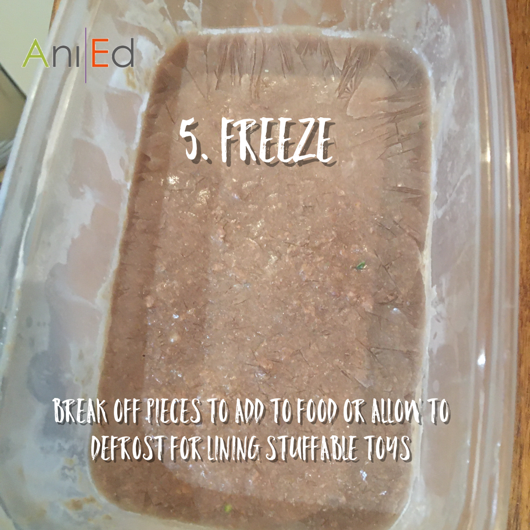 This is really versatile. I like to break off chips of frozen mix to add to stuffable toys or as a topper. You can defrost it and spread it in toys and refreeze too!