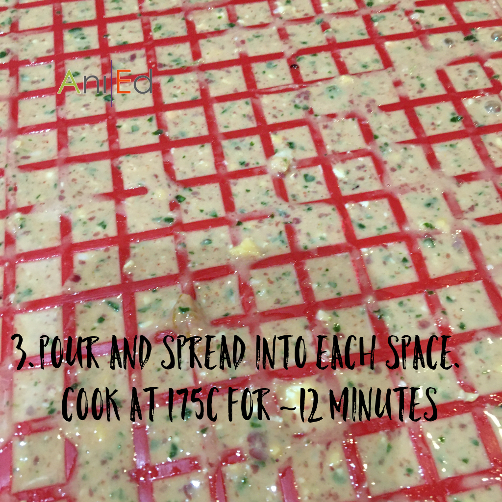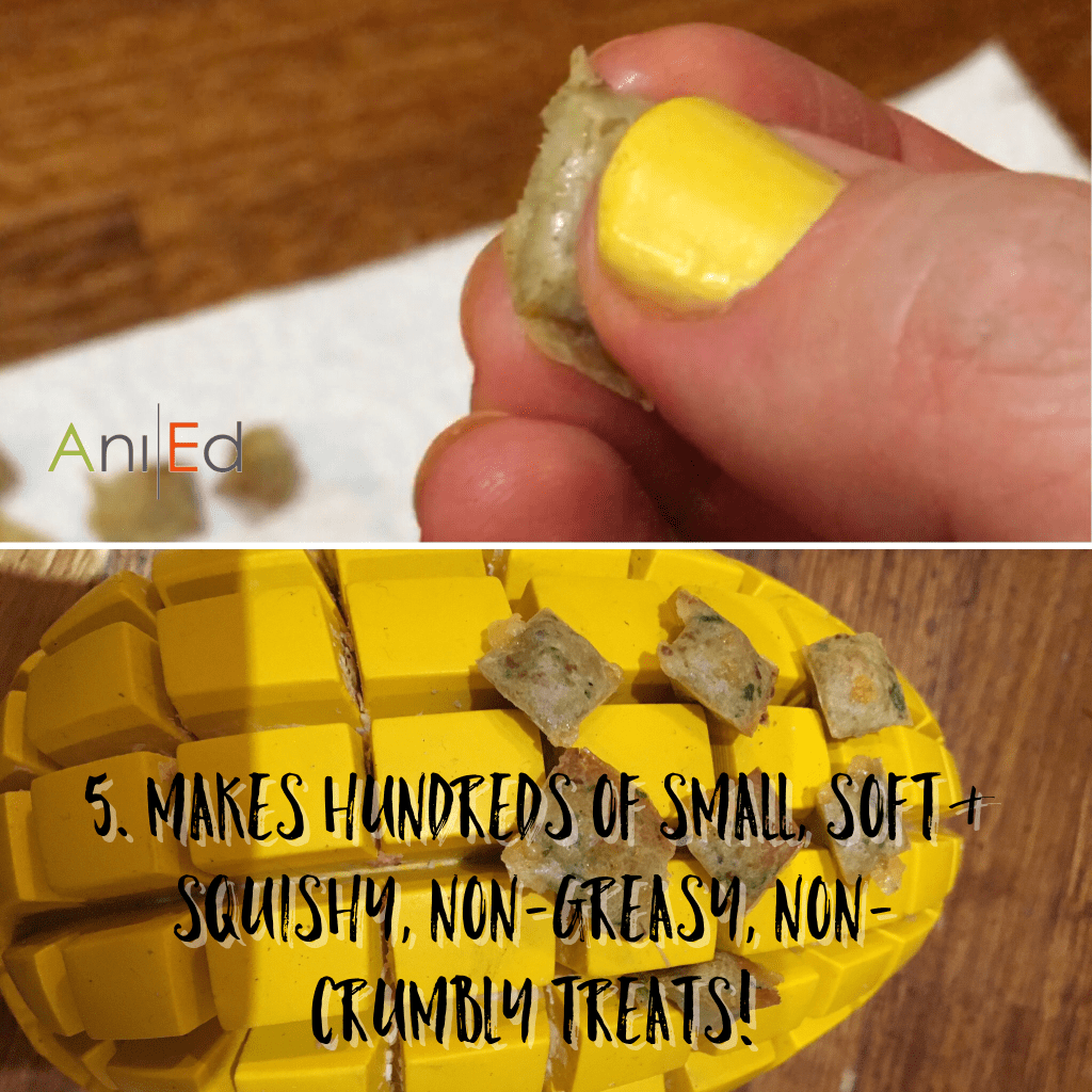 The great thing about these treats is that they turn out of the pan really easily and cleanly, making this a very efficient way of preparing food rewards.