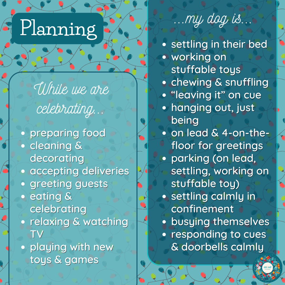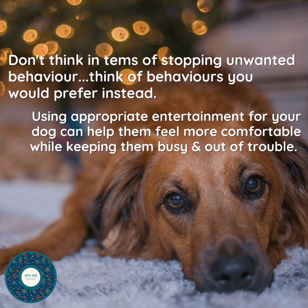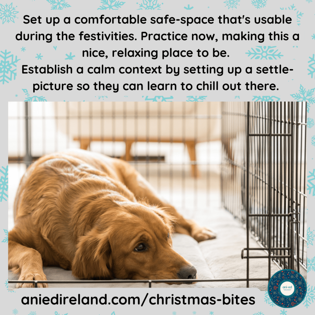 4. Entertaining Canines (tutorials for you to practice) – set your dog up for Seasonal success by providing appropriate entertainment, and, where helpful, a Seasonal safe-space established as their entertainment-centre.