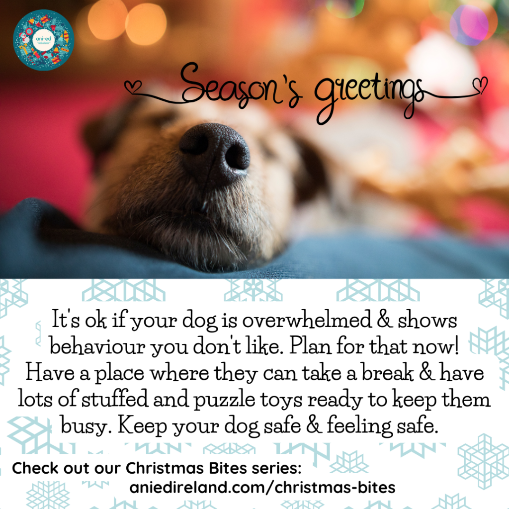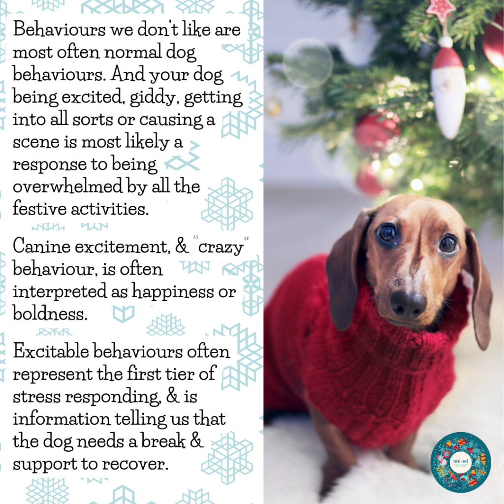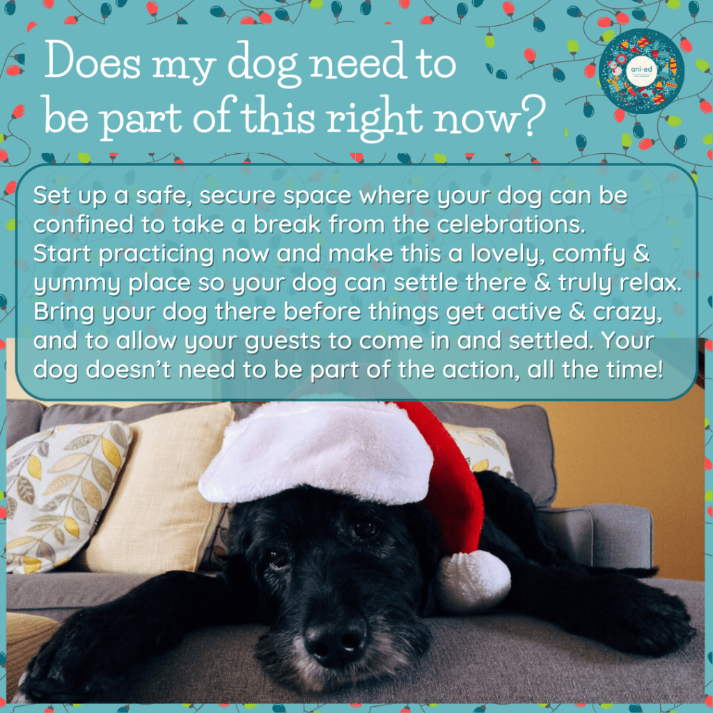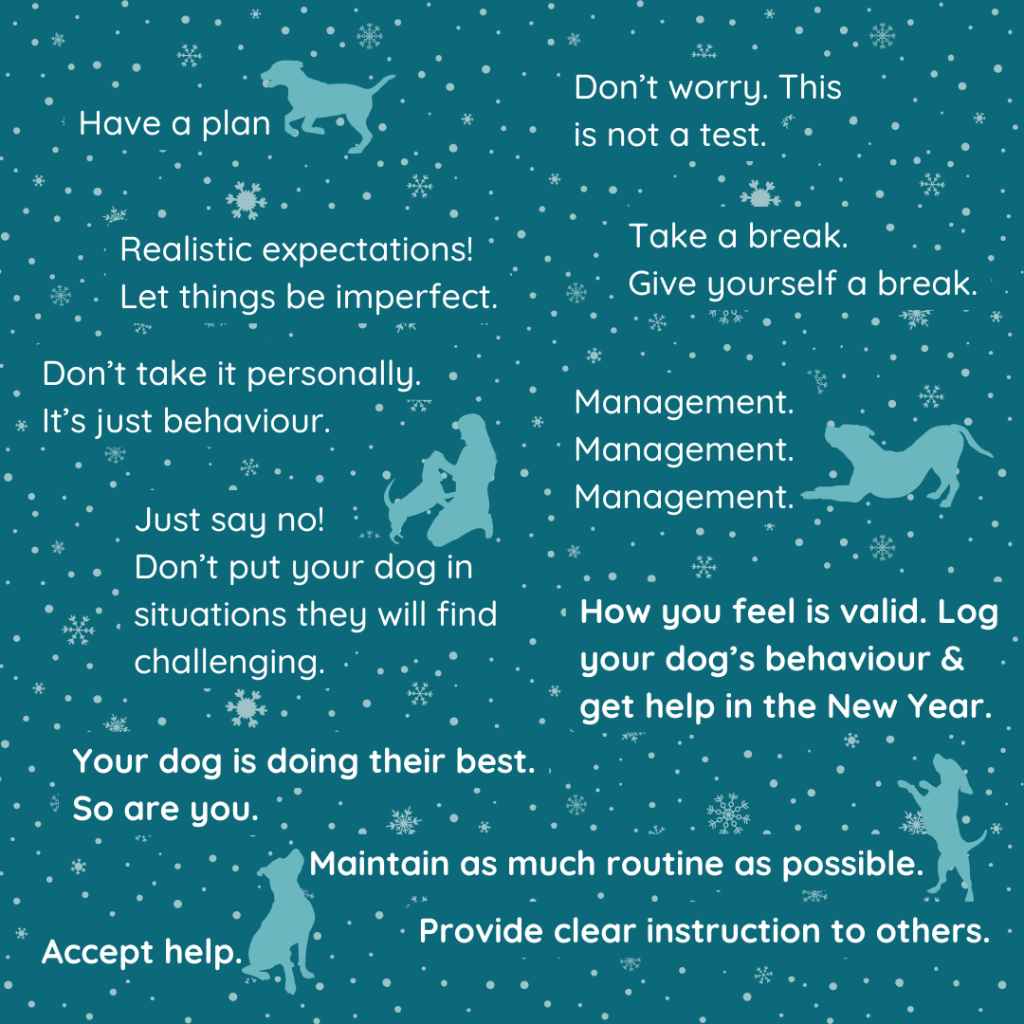 5. Howliday Pressures – the celebrations are not a test of your and your dog’s behaviour or training. Realign your expectations of your dog’s behaviour with the reality of the preparation you have provided. And don’t forget to give yourself a break too!
