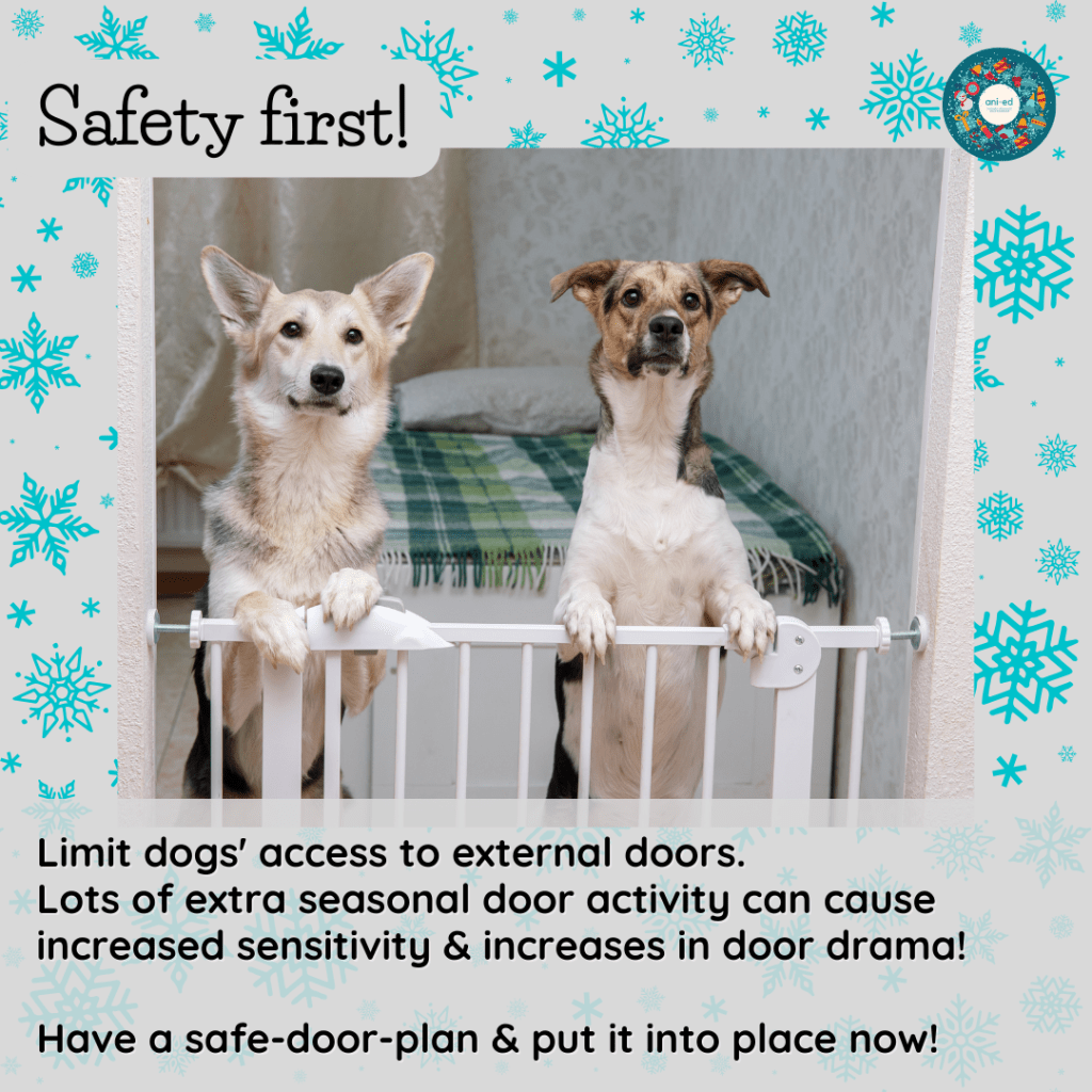 6. Doors, greetings & all that drama (tutorials for you to practice) – there’s lots and lots of extra door activity during the Season and this can lead to increased challenge and stress for all, particularly your dog.