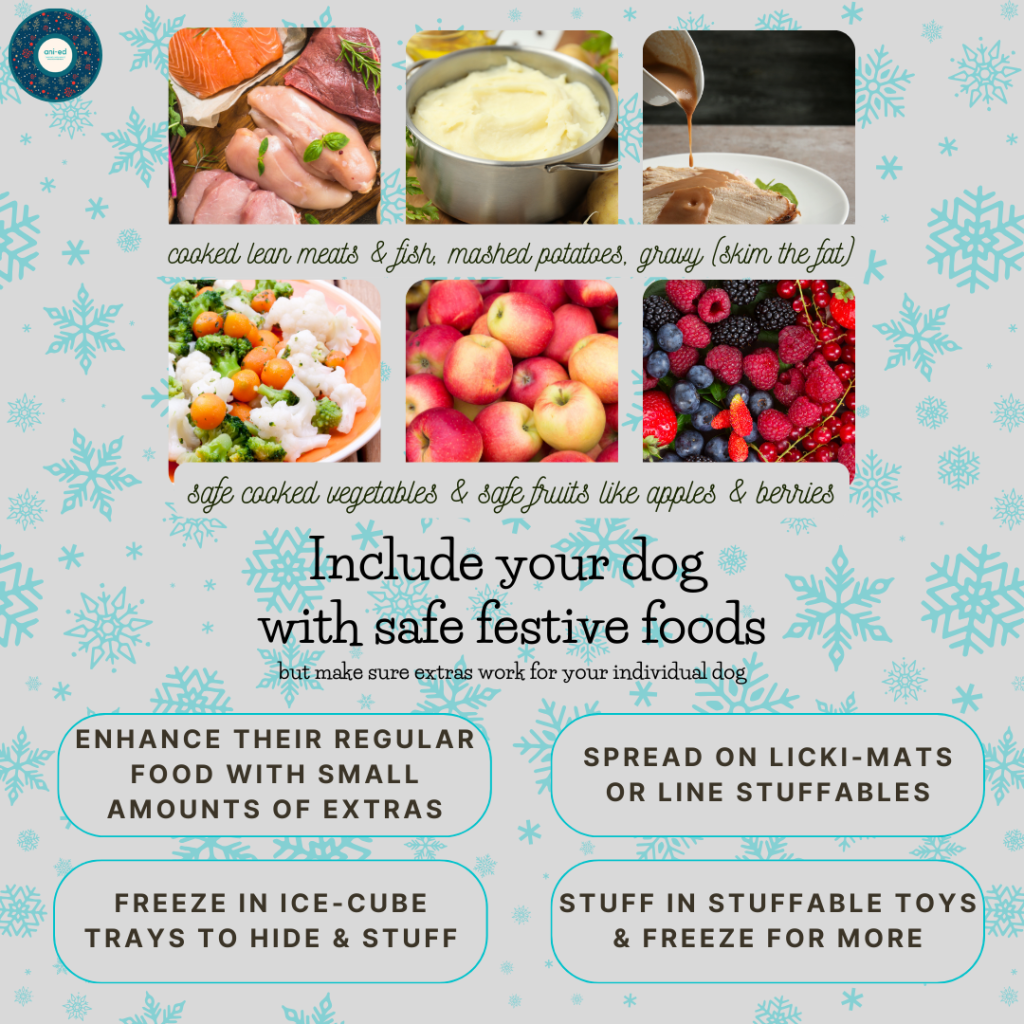 While it’s important to prevent our dogs getting forbidden and dangerous festive foods, we can include our dogs in our celebrations with safe and suitable foods too.