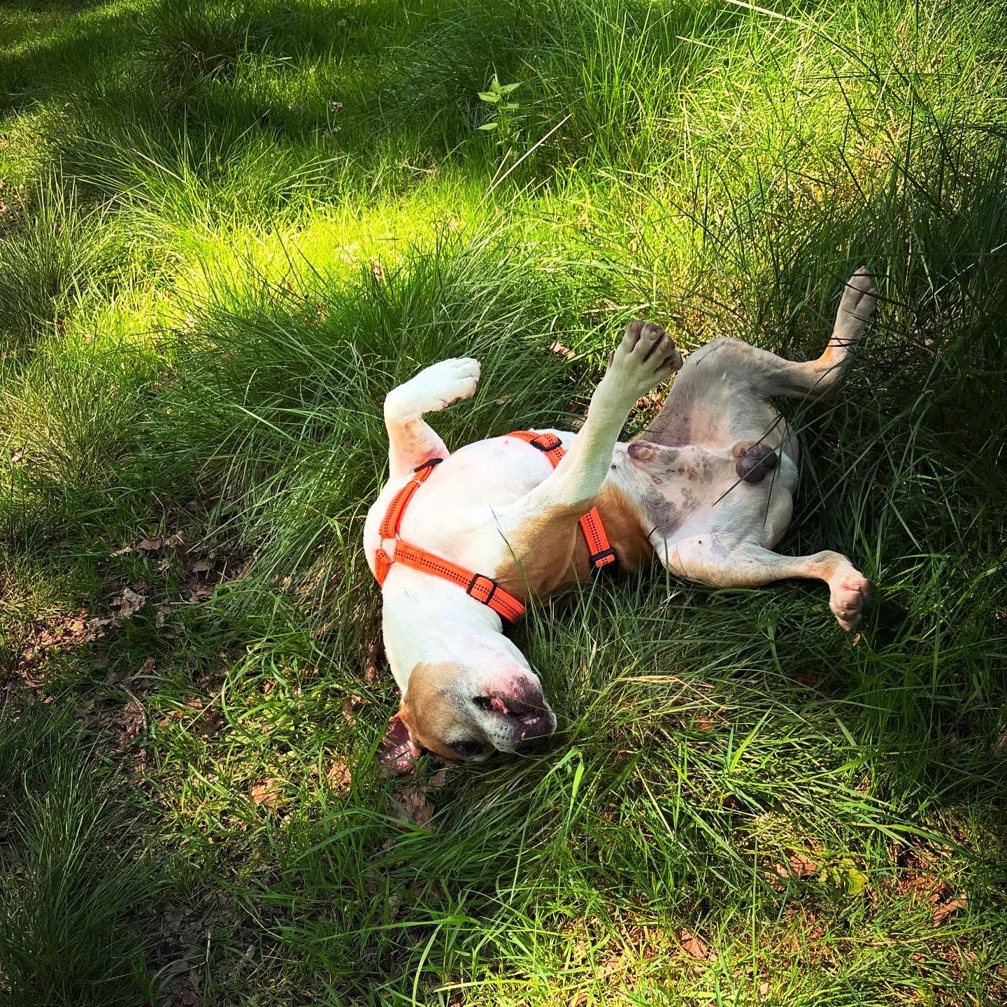 More open space, particularly grassland and long grass, or water…any water… and that picture starts to look a whole lot crazier and more active. He still gets to do that, these behaviours are important too and his behavioural health matters as well.
