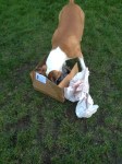 Digging/burying and hoarding behaviour may be employed by many dogs, often much to their owner’s disgust (especially the green-fingered owners). Some dogs appear really bothered when they get something quite special, carrying it from place to place, vocalising, difficulty settling…