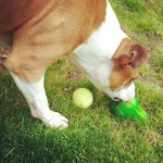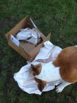 After we did some training work, Lottie worked on a puzzle – getting her dinner out of a plastic milk jug.