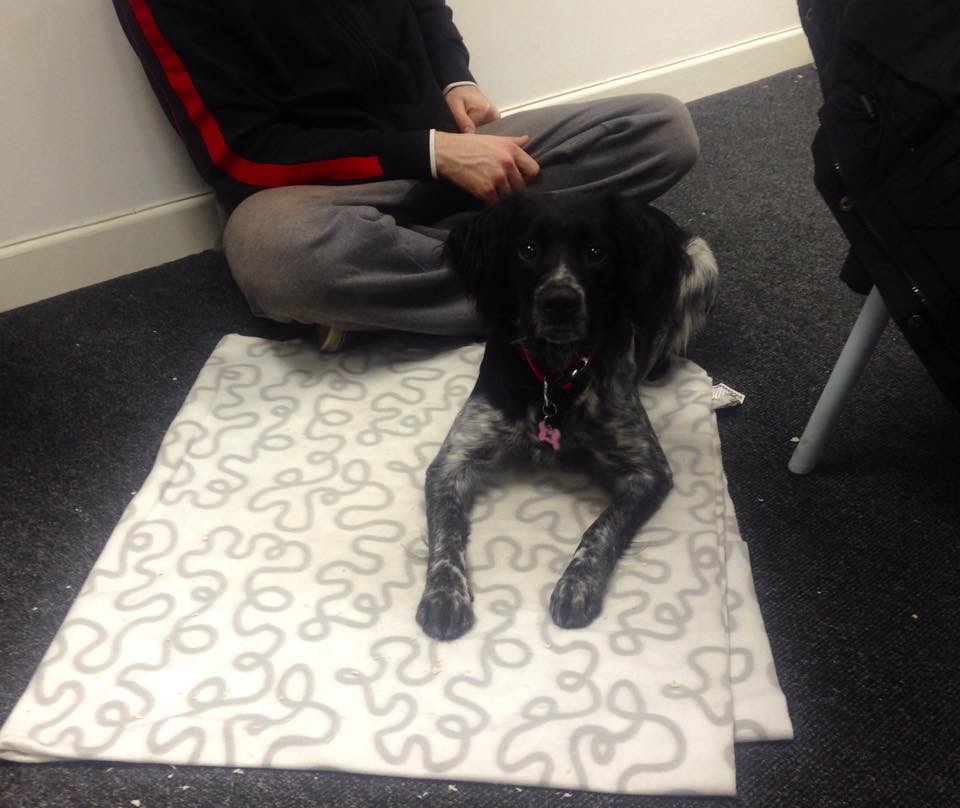 Despite being scared of the mat at first, soon she was able to lie on it comfortably. Her dad helped by giving some support (sitting beside it neutrally) but Roxy was soon able to interact and lie on the mat with shaping, lots of choice and salami!