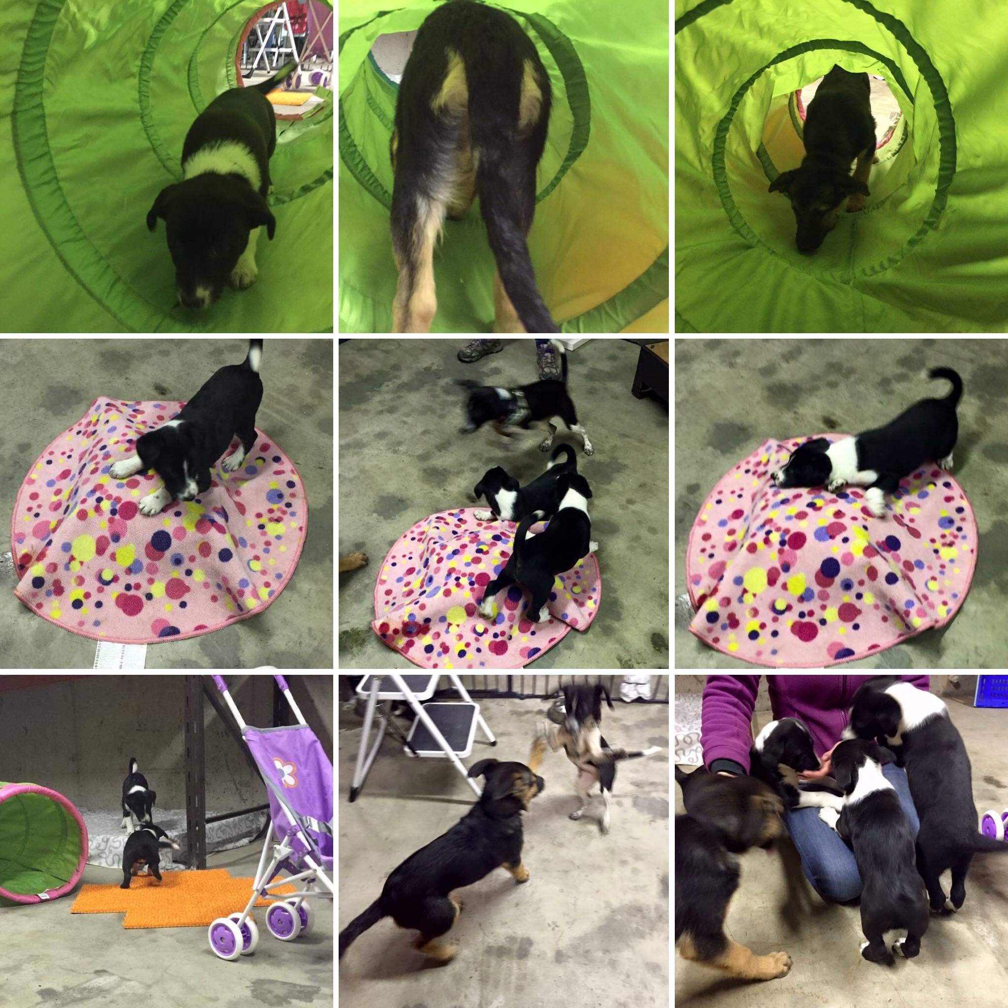 We set up a confidence course behind a barrier so that the puppies couldn’t get into any mischief.