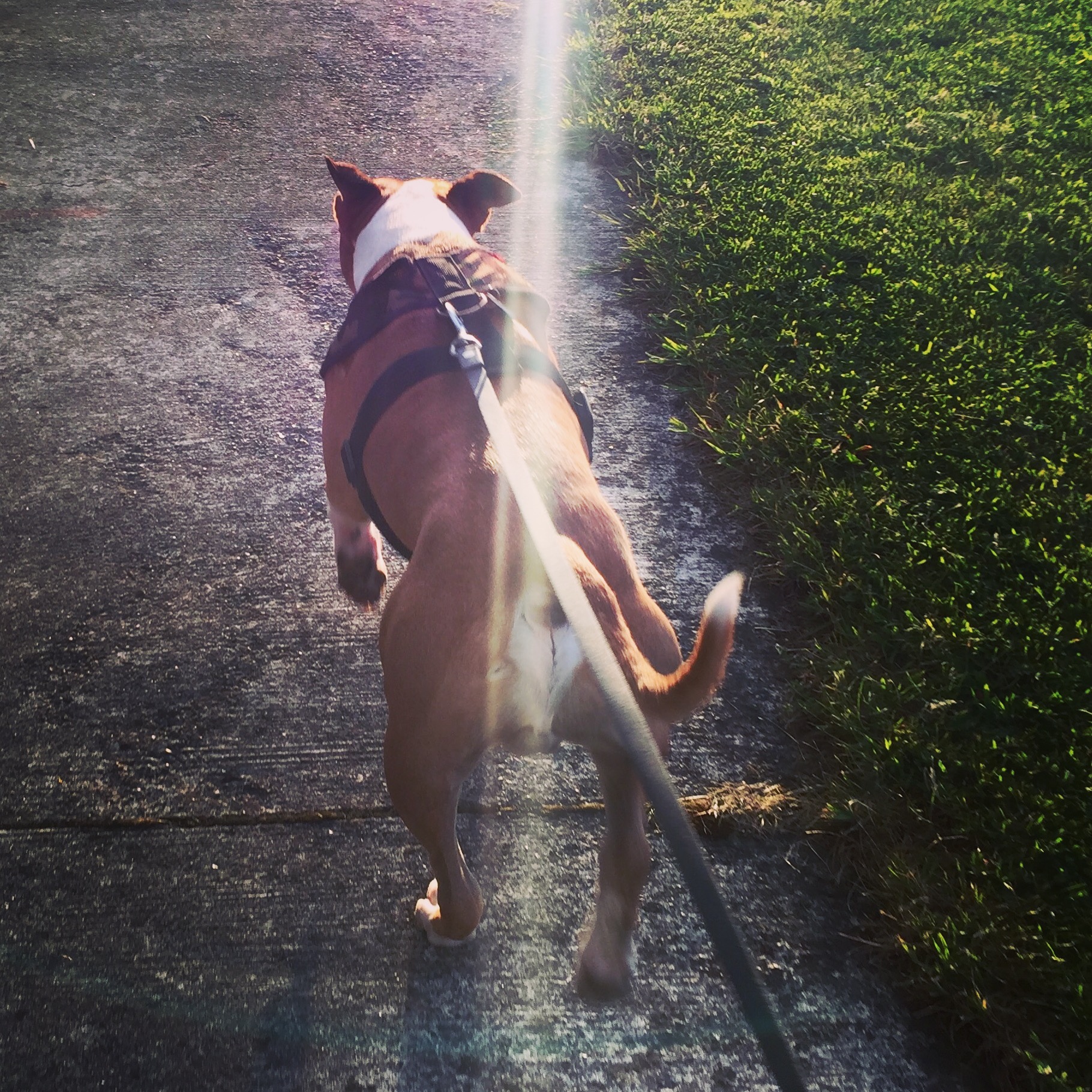 - Change your pace – stroll, walk, trot, jog, sprint and then back to trot and up to sprint again and mix & match so that your dog (and you) need to adjust and compensate.